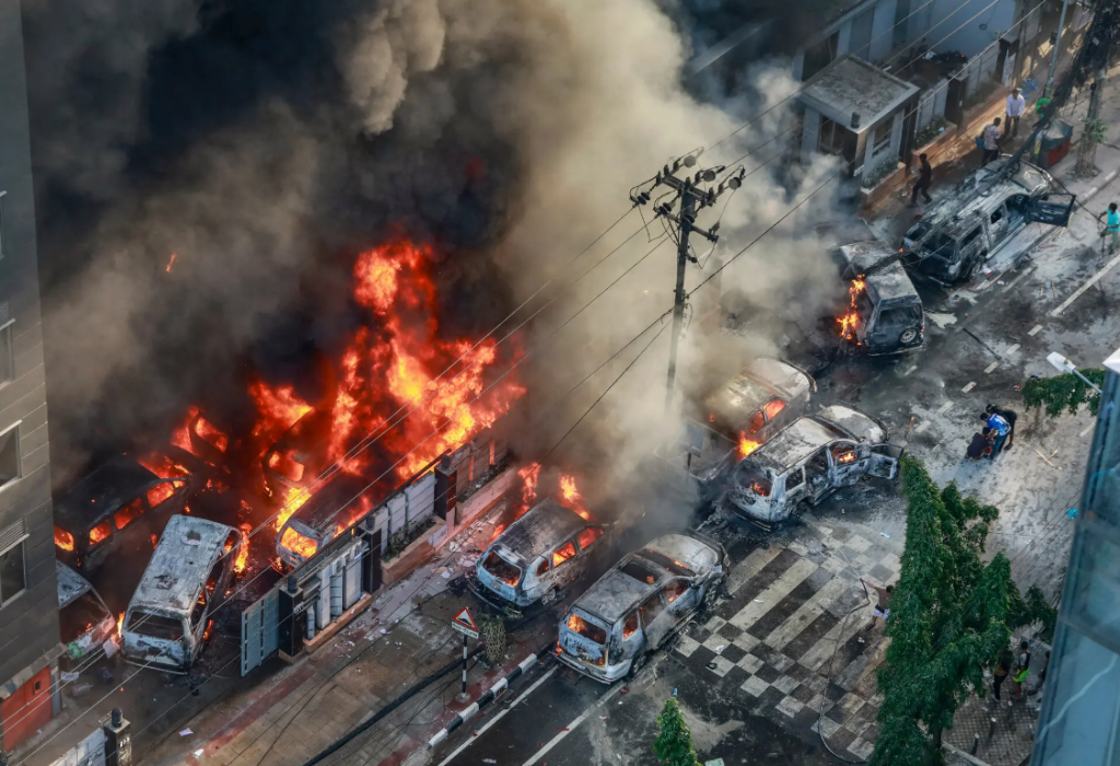 On Friday, the protests escalated as demonstrators stormed a jail in the district of Narsingdi, northeast of the capital, freeing hundreds of inmates. Police stations were ignited as paramilitary and military forces deployed tear gas, rubber bullets, and smoke bombs to break up the crowds.